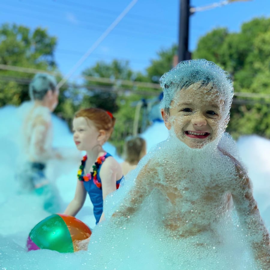 Foam it up. This package includes a 3 hour Foam Party. Packages includes an attendant to run machines. Foam is fun non toxic and environmentally friendly. Foam is as slippery as water and is bounce house and pool safe. Great way to change it up!!! Foam can be created on the grass or a tarp can be laid out! Add inflatable pit (26' x 22' x 48') for additional $200 to contain foam. Email office at bookabouncema@gmail.com to add this to your reservation.