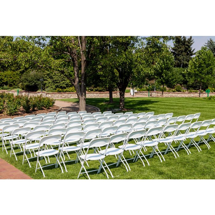These White Plastic Folding Chairs are the choice of many event planners and rental companies for their lightweight design, ease of cleaning, and versatility among events. Manufactured using high-impact plastic and 18-gauge powder-coated metal frames, our white plastic folding chairs are suitable for both indoor and outdoor events.