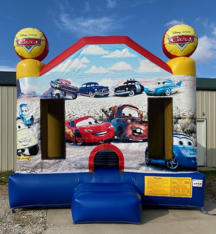 Bounce with Lightning McQueen and the guys and Have a fun with fun filled party. This Bounce house is 13 x 13.
